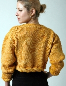 This piece has many unique details which make it one of the most modern pieces in this collection. It has an asymmetrical closure in front, a large button and braided cables on cuffs and bottom edge. Fantastic!